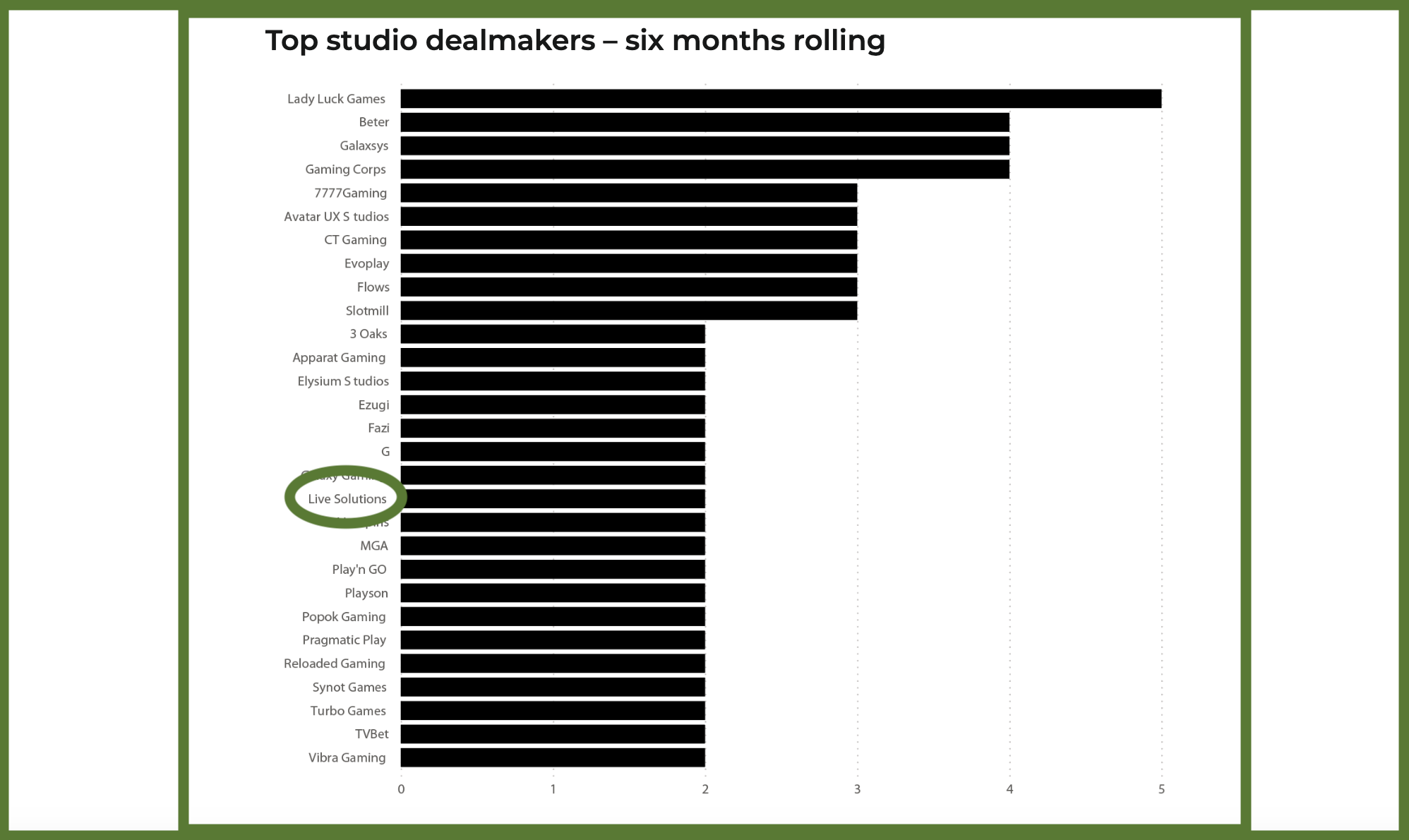 Top studio dealmakers – six months rolling