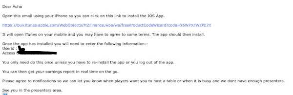 If you are using an apple device your app it will look like this. It will just show your earnings with a refresh button. Please allow notifications.